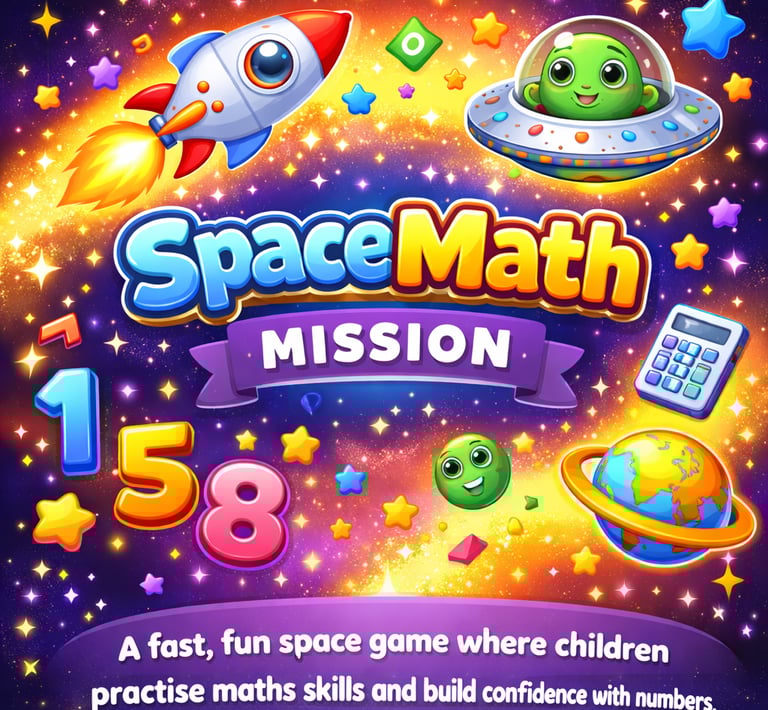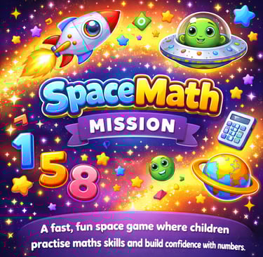 A fast, fun space game where children practise maths skills, build confidence with numbers, and enjoy learning through play.